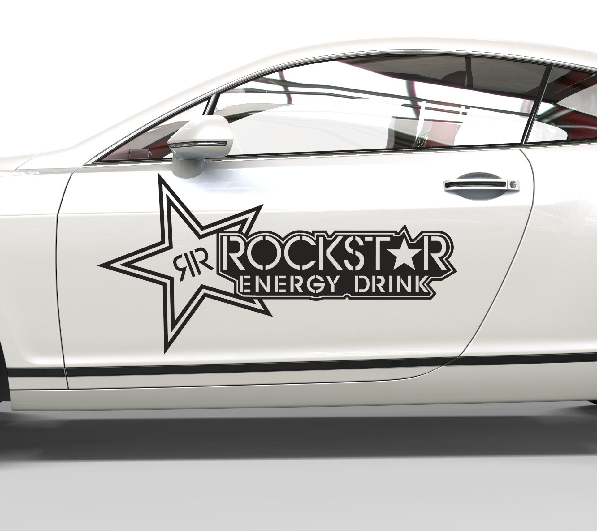 Sie sehen den Aufkleber Rockstar Energy Drink