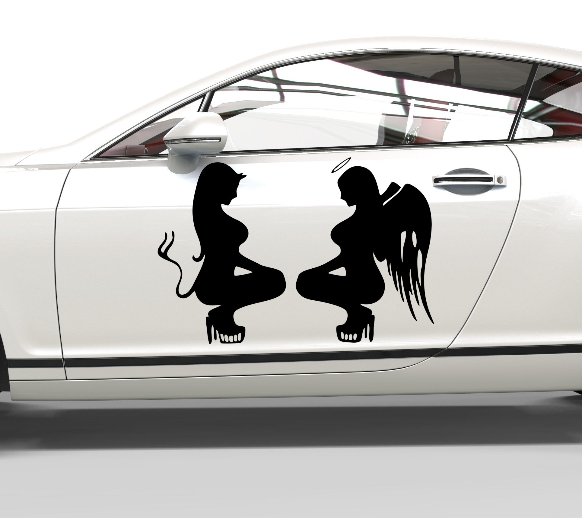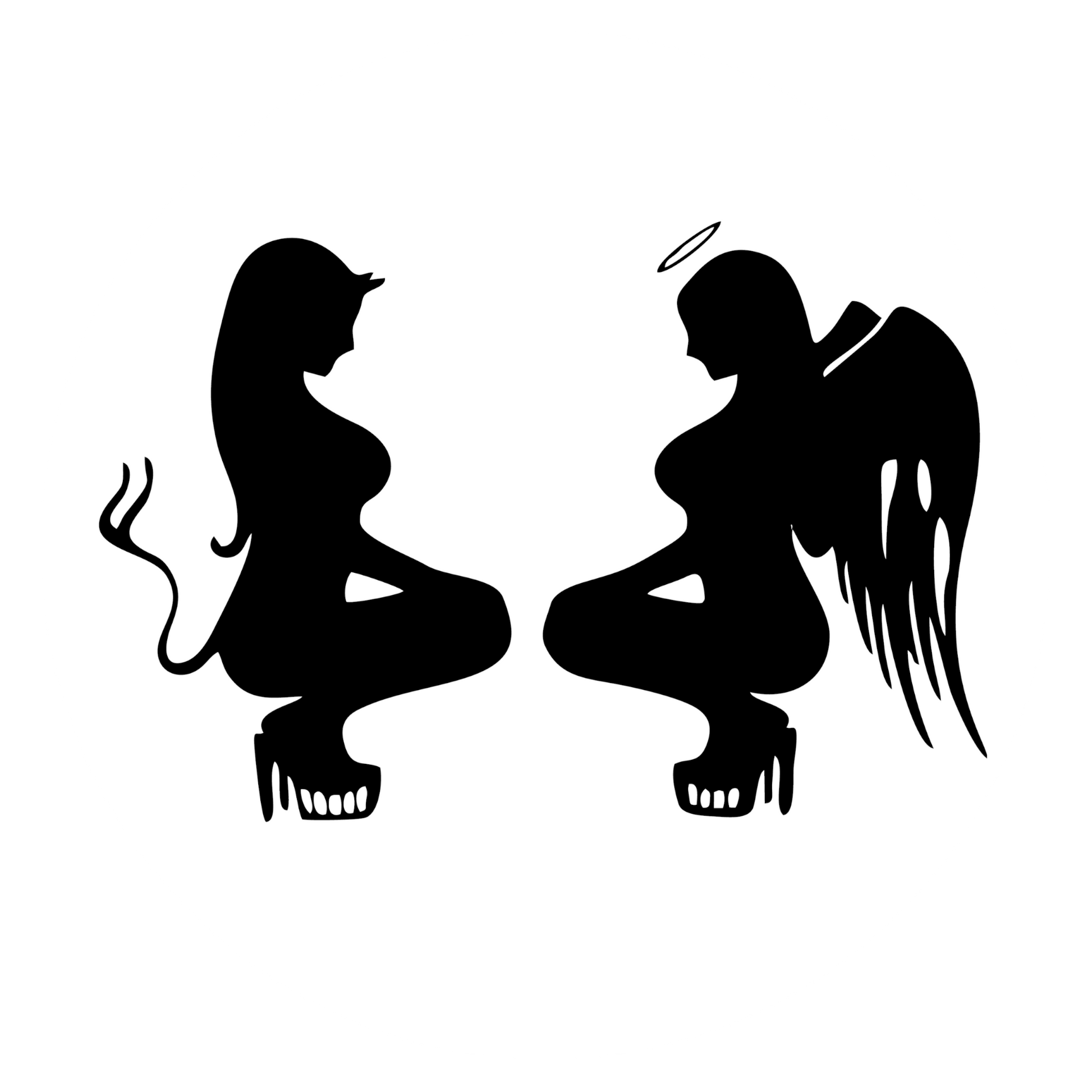 Autoaufkleber Teufel und Engel hockend