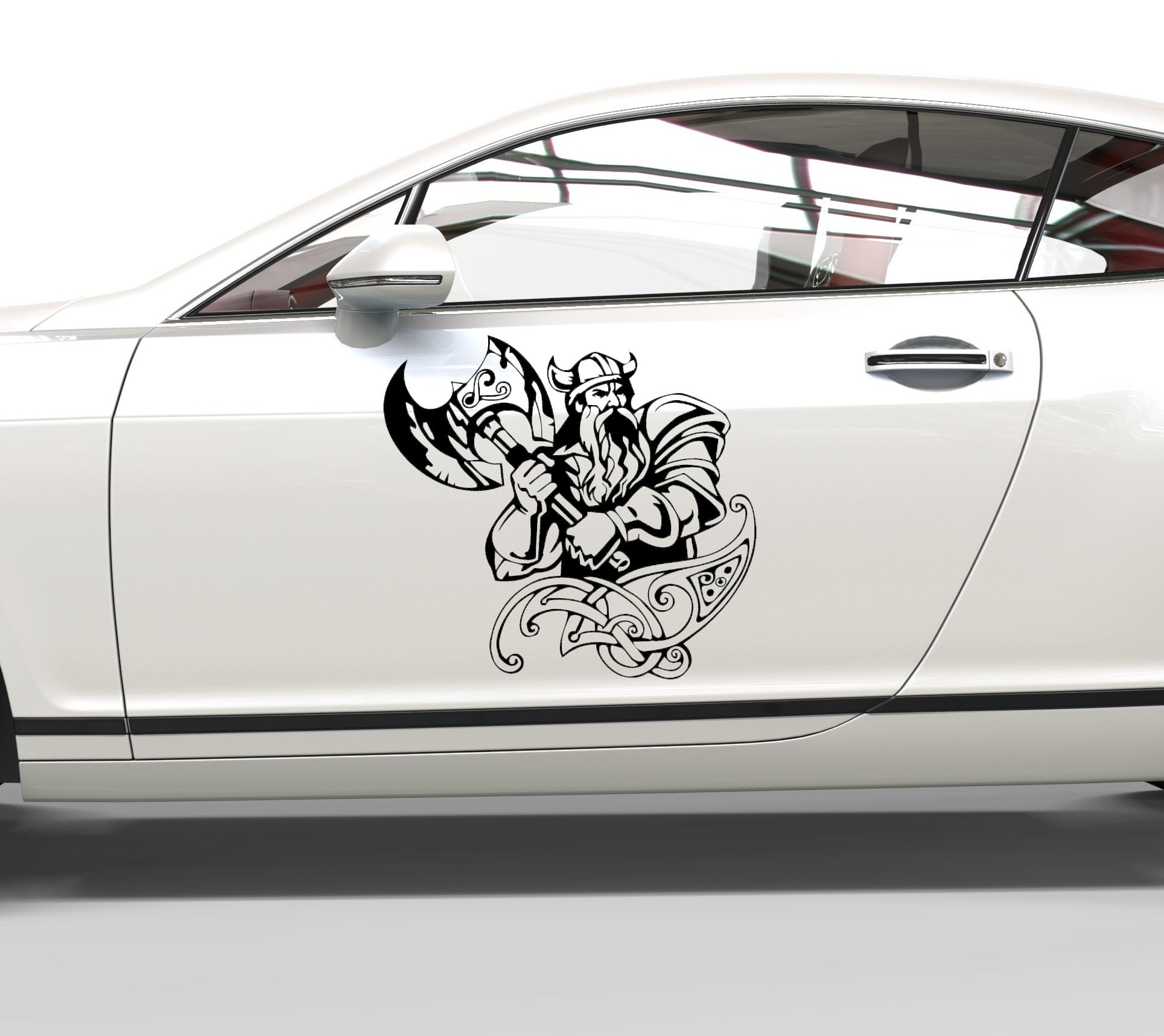 Autoaufkleber Wikinger mit 2-Hand Axt und Verzierung