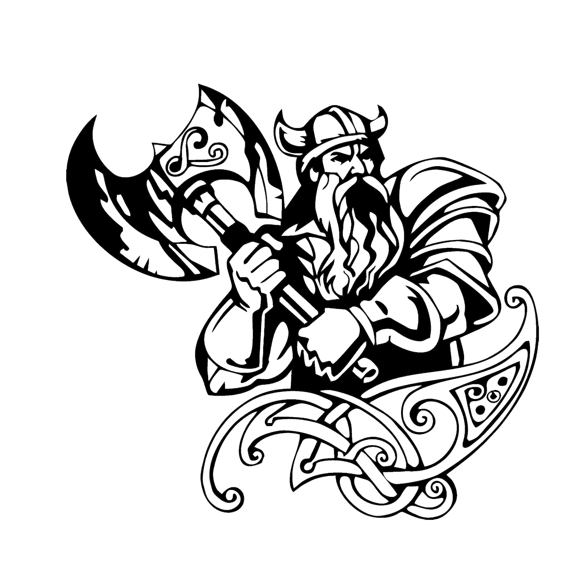 Sie sehen den Aufkleber Wikinger mit 2-Hand Axt und Verzierung