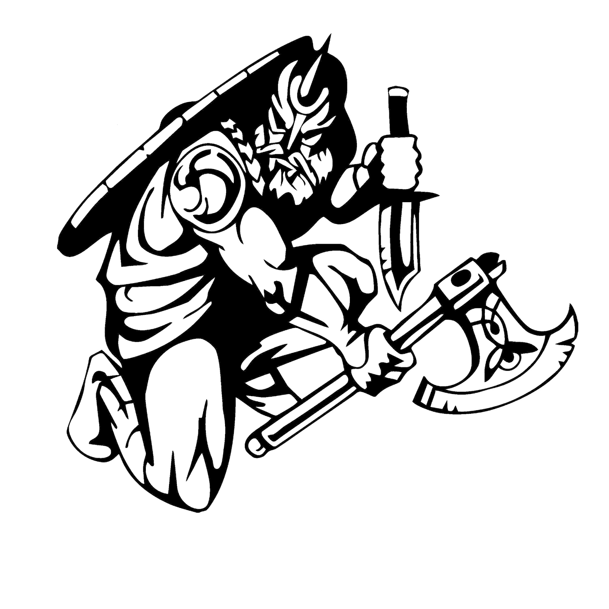 Sie sehen den Aufkleber Wikinger mit Axt und Dolch