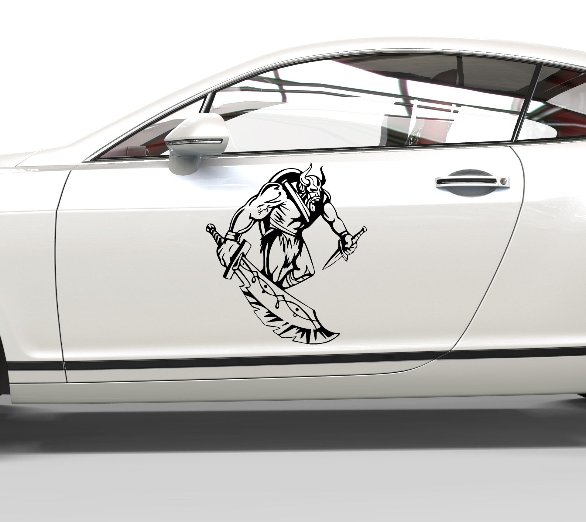 Autoaufkleber Wikinger mit Schwert und Dolch