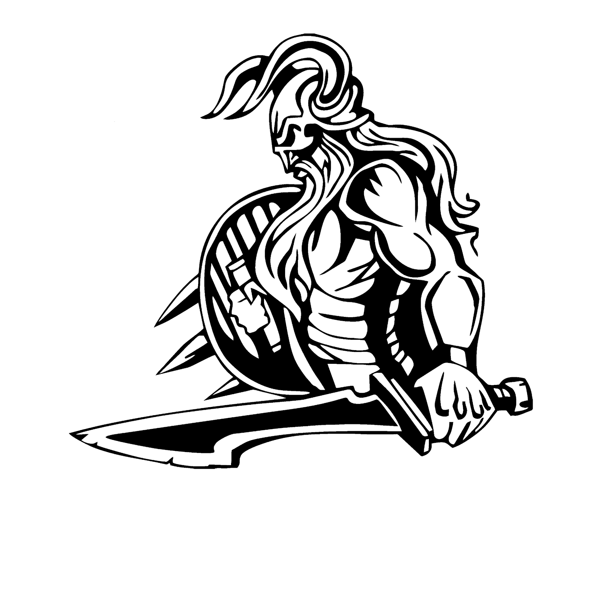 Sie sehen den Aufkleber Wikinger mit Schwert und Schild seitlich