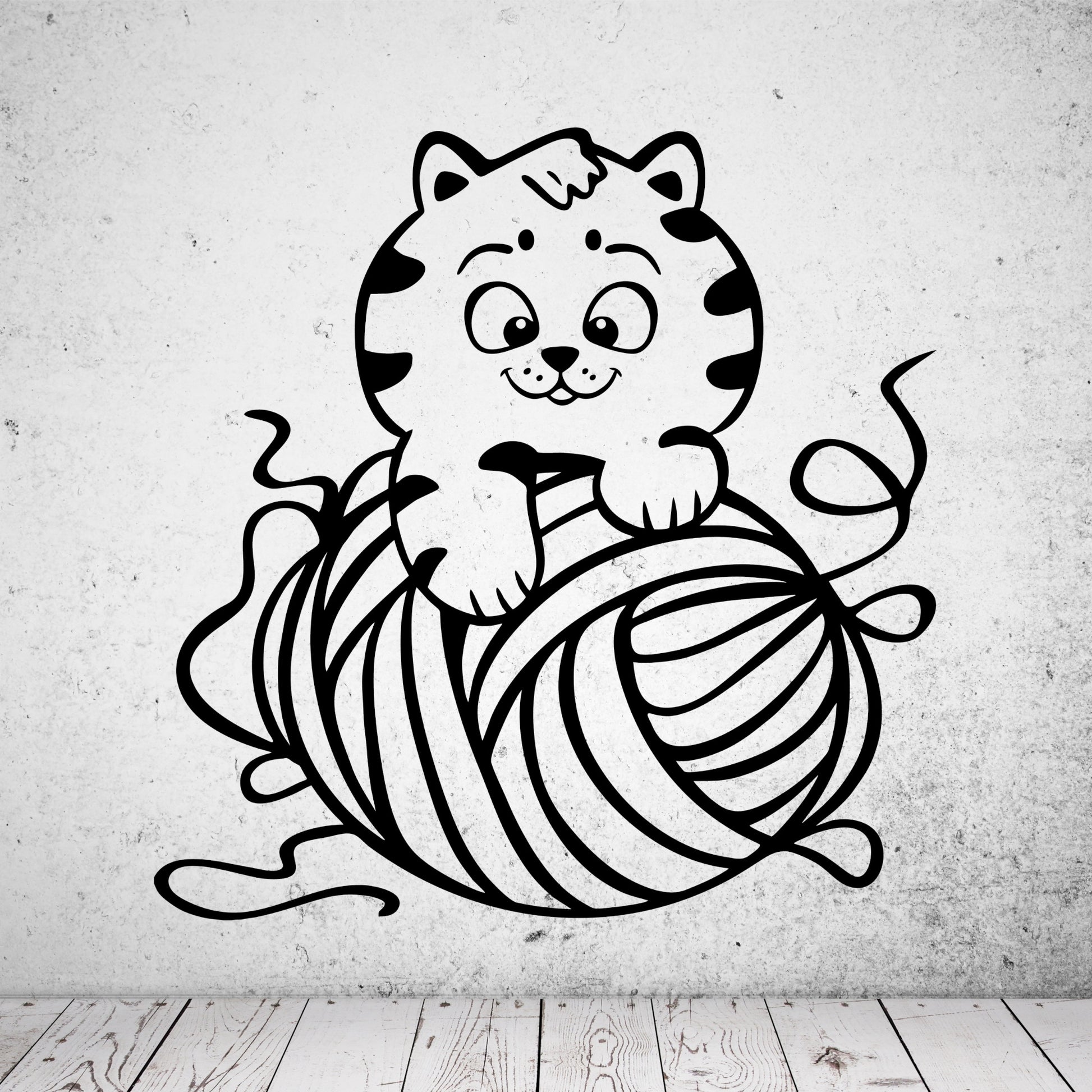 Sie sehen unsere Darstellung des Wandtattoos Katzenbaby mit Wollknäuel,