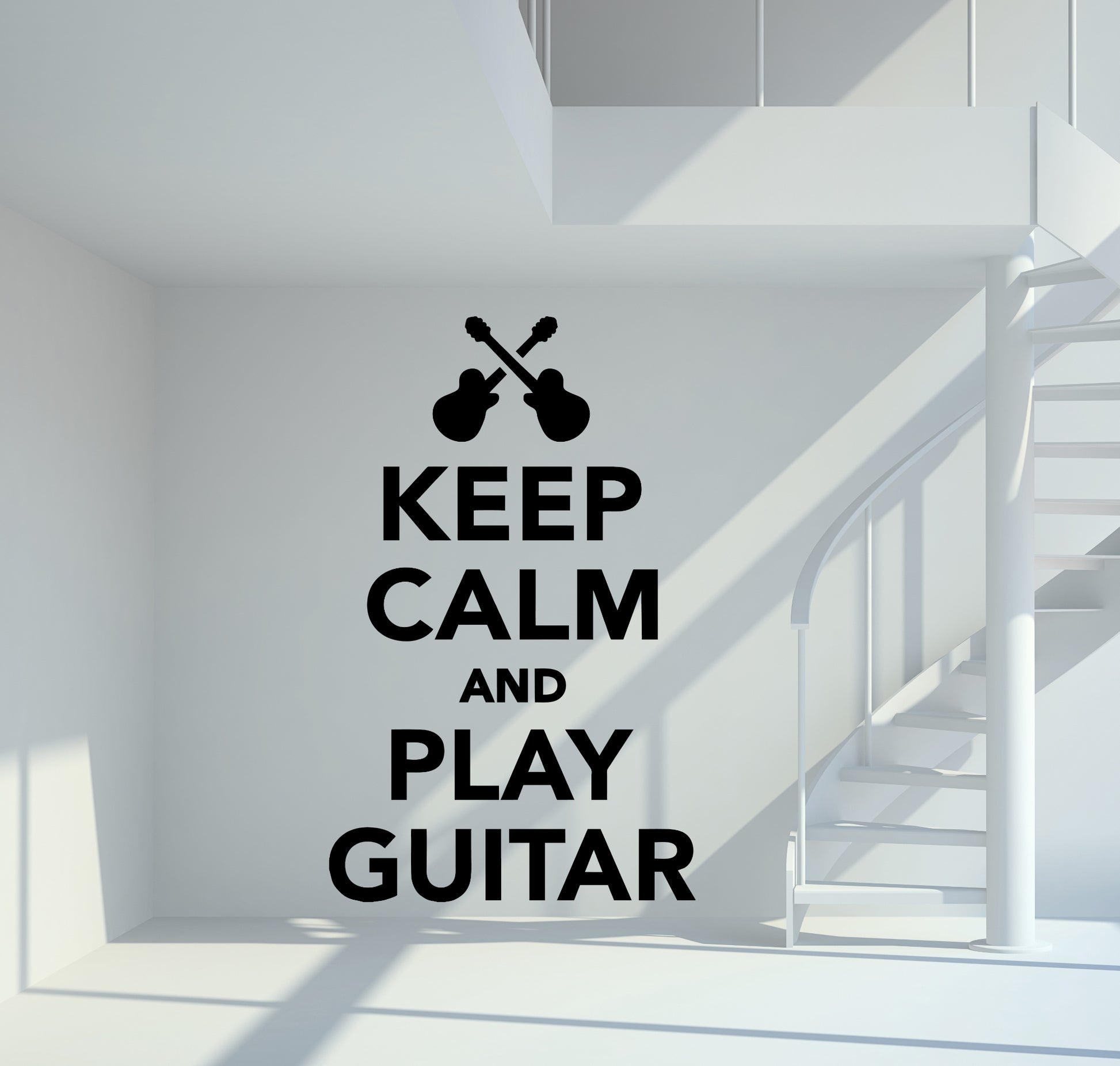 Sie sehen unsere Darstellung des Wandtattoos Keep calm and play Guitar,