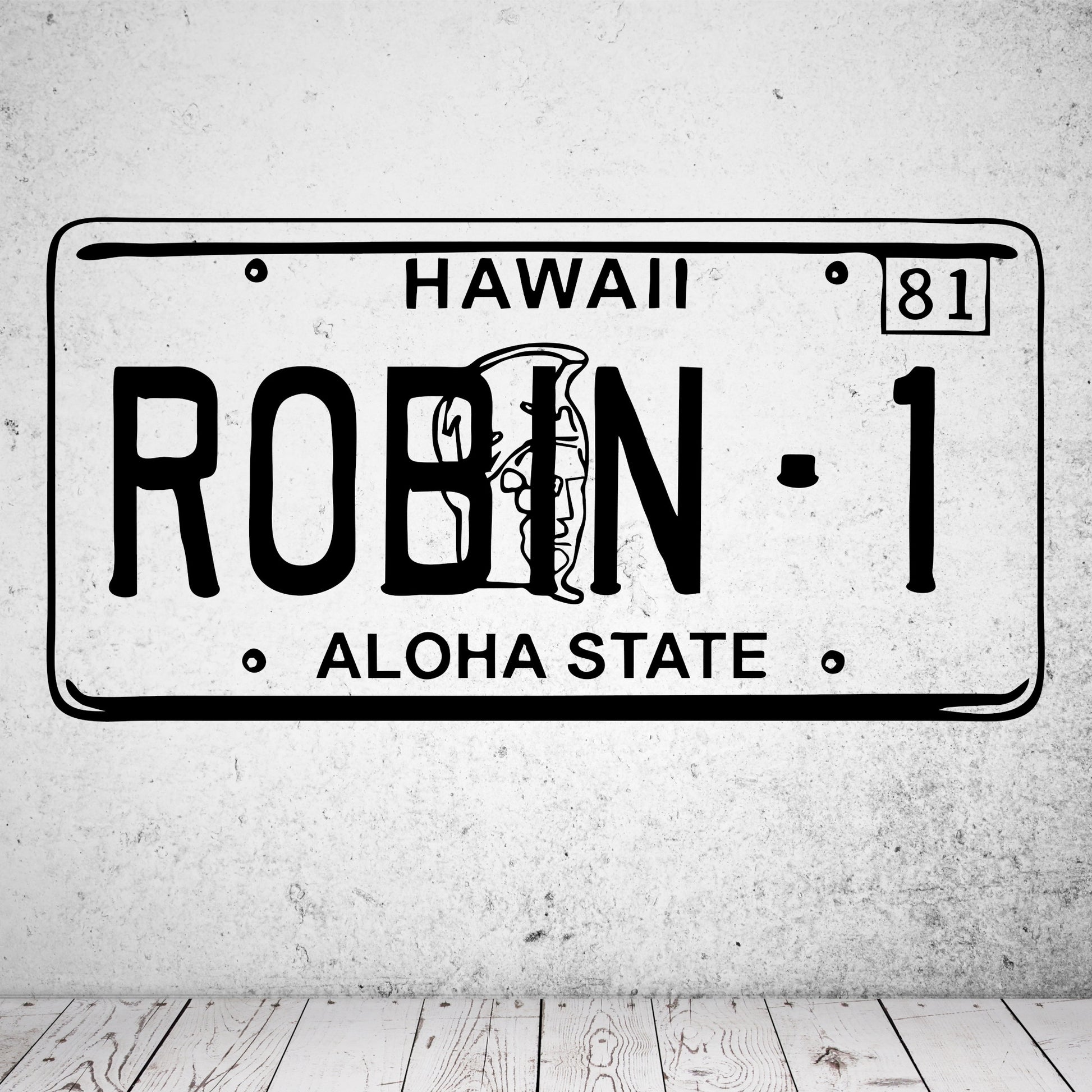 Sie sehen unsere Darstellung des Wandtattoos Magnum - Robin1 Nummernschild,