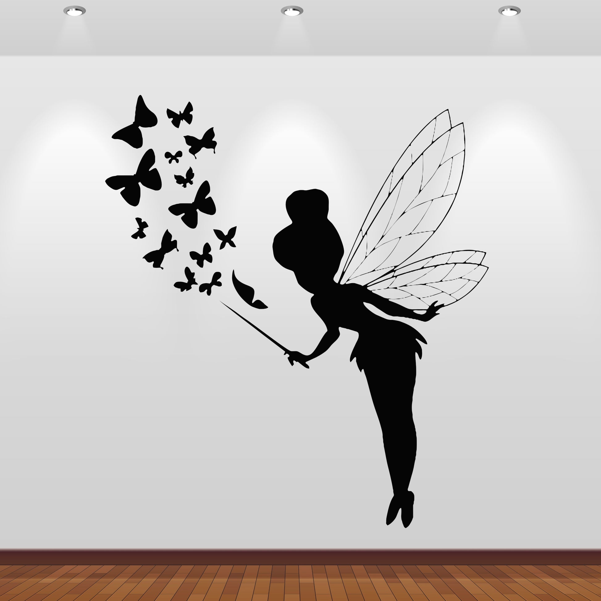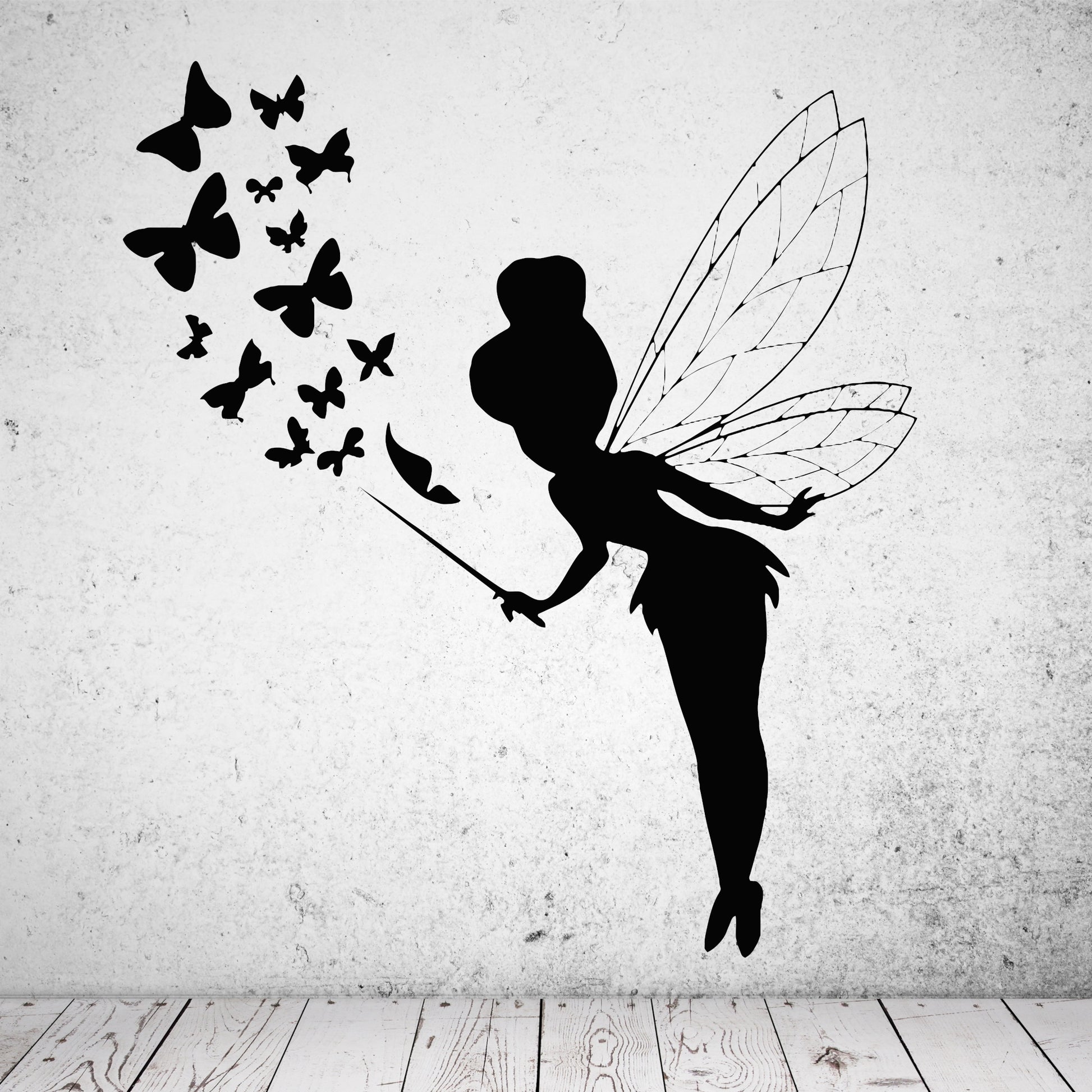 Sie sehen unsere Darstellung des Wandtattoos Zauberelfe mit Schmetterlingen,